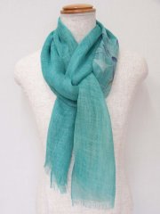 リネン生地に手描友禅の技術(伏せ、引染)を使って染められています。手描友禅をクリックすると工程をご覧になれます。