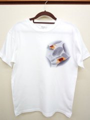 制作工程上、水洗いをしますのでTシャツが一度洗った感じになります。その時の彩色、Tシャツで色の落ち具合や 状態が変わります。ご了承ください。