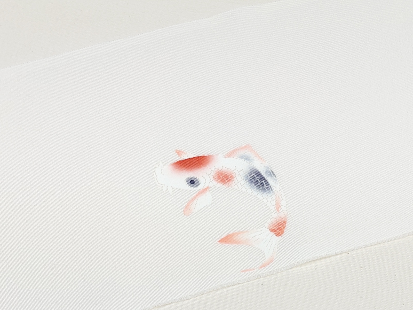 どんな着物にも合わせやすい白の半衿に、錦鯉を描いています。