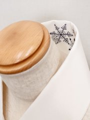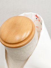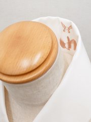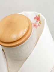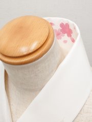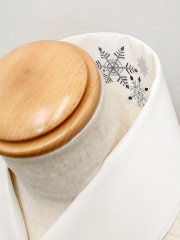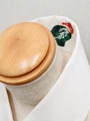 ちらりと見えるワンポイント柄を描き、遊び心を纏う半衿は幅広いきものに合わすことができます。