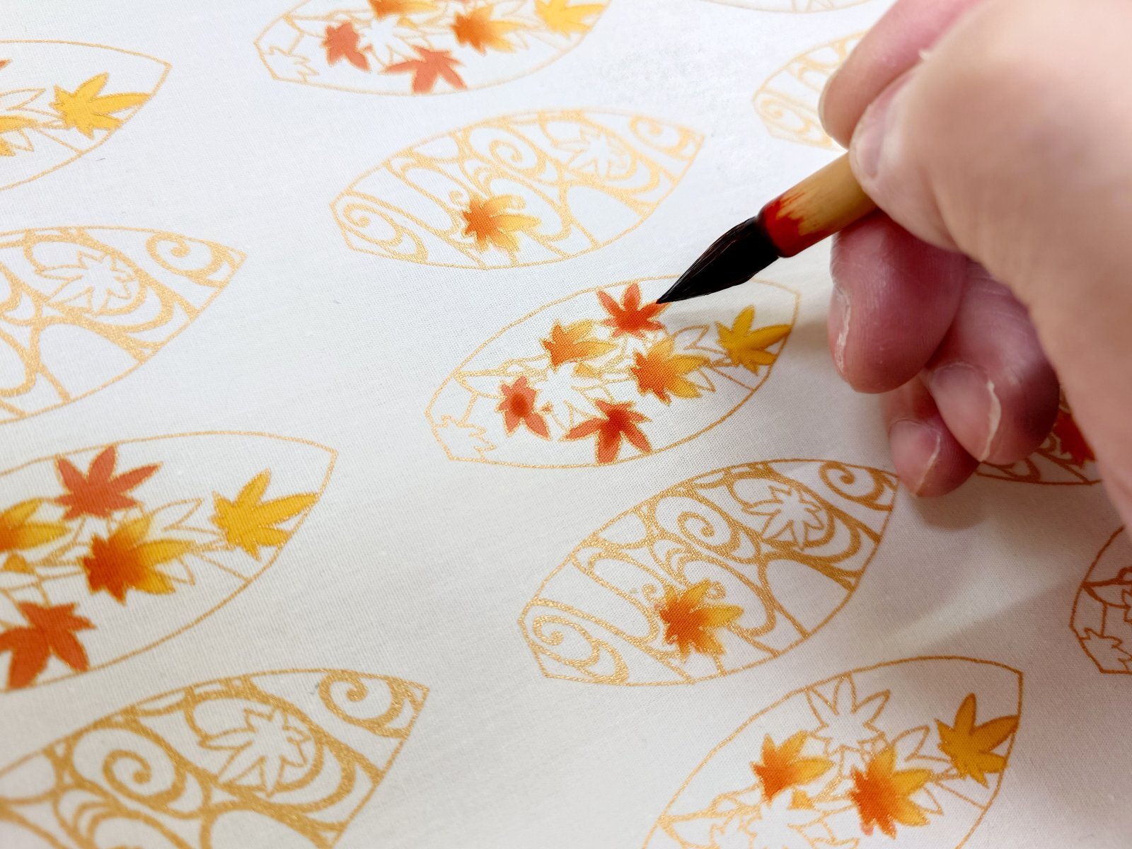 綿生地に手描友禅の技術(色挿し)を使って染められています。